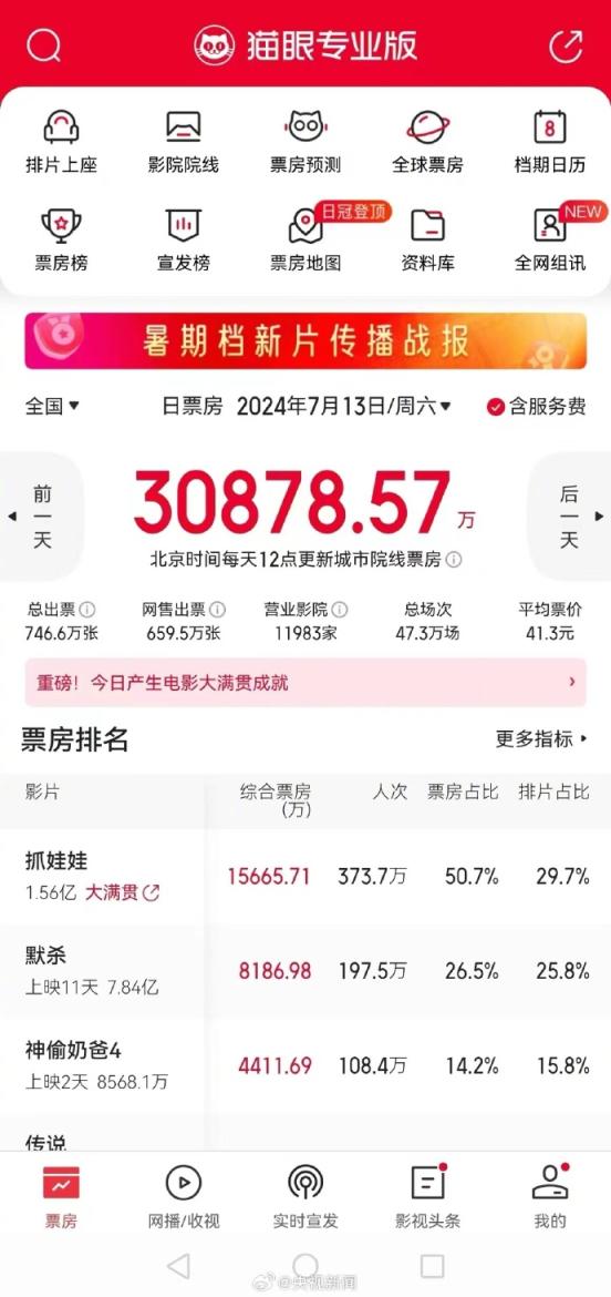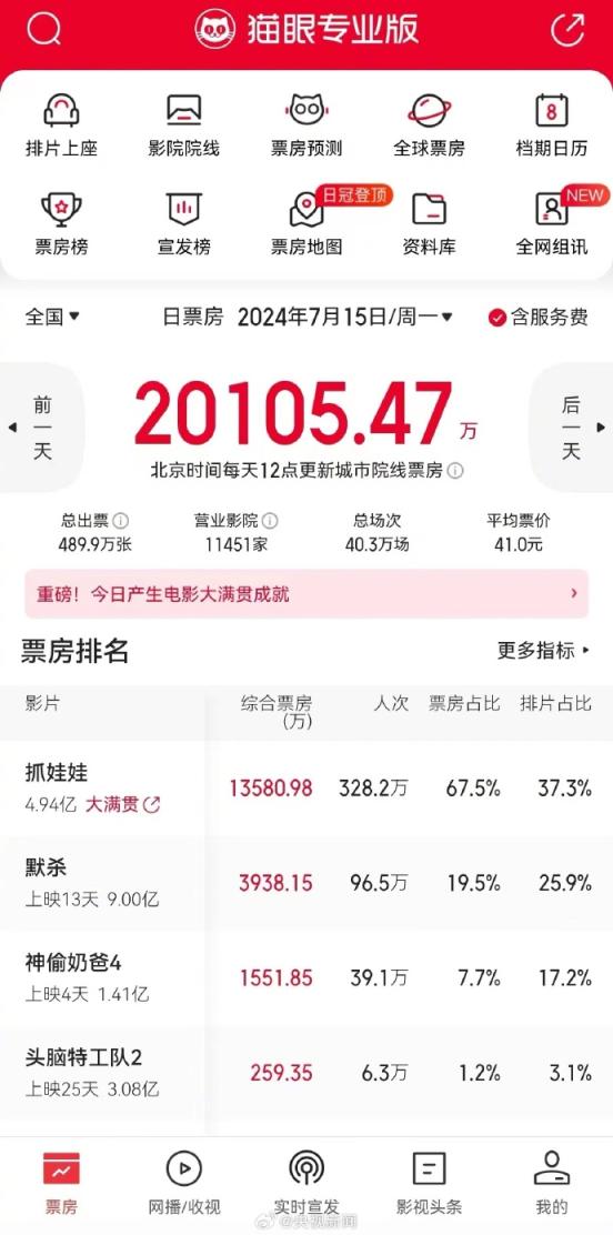 暑期档也太卷了!7月13日至15日,本年暑期档电影票房已流畅三天迫害2亿元,总票房已超40亿元!被网友称西虹市版“楚门的宇宙”的《握娃娃》点映及预售票房破5亿;《落凡尘》《神偷奶爸4》《机器东说念主之梦》等还带来了夏令动漫狂欢。